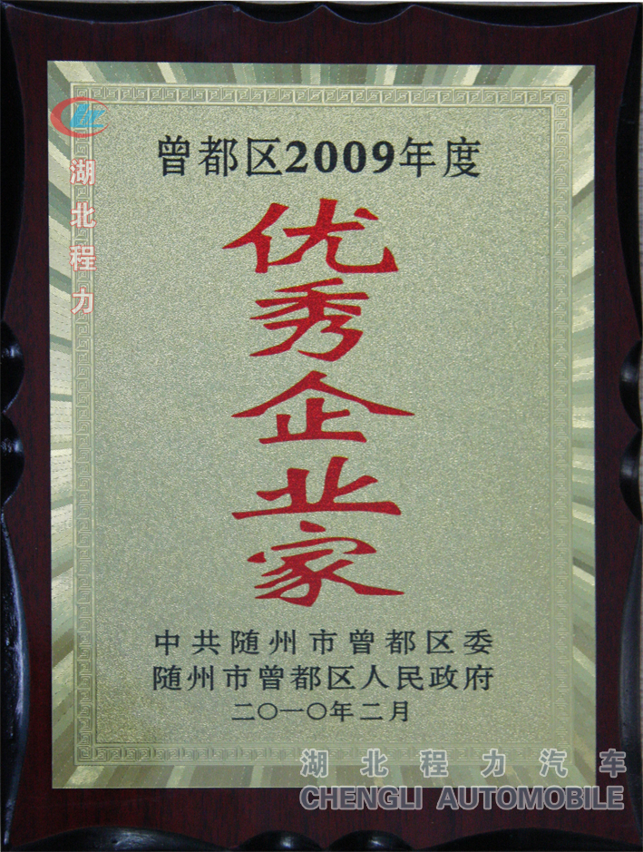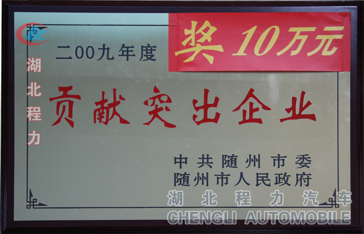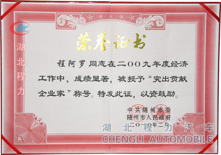 2010年2月26日,正月十三,經(jīng)過程力公司2009年全體員工共同努力,榮譽(yù)的桂冠再次給了程力公司及公司總經(jīng)理程阿羅,在神農(nóng)大劇院隆重召開的隨州市2009年度總結(jié)表彰暨全市深入“推進(jìn)全民創(chuàng)業(yè)擴(kuò)大對外開放 建設(shè)工業(yè)強(qiáng)市”動員大會上。湖北程力公司及總經(jīng)理程阿羅榮獲“2009年度突出貢獻(xiàn)企業(yè)”、“2009年度突出貢獻(xiàn)企業(yè)家”“優(yōu)秀企業(yè)家”光榮稱號。