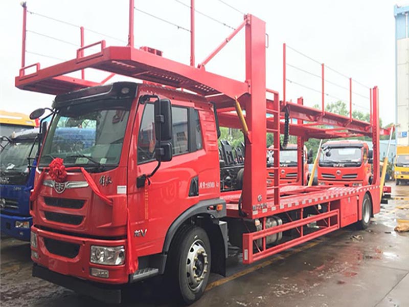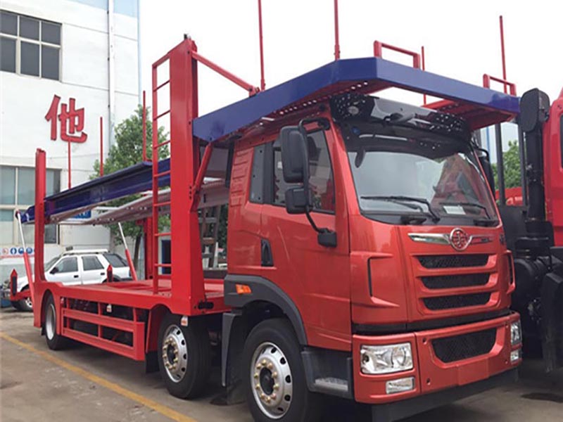轎運(yùn)車是指運(yùn)輸轎車的車輛。轎運(yùn)車根據(jù)結(jié)構(gòu)不同可以分為中置軸轎運(yùn)車、骨架式轎運(yùn)車、半封閉式轎運(yùn)車、全封閉式轎運(yùn)車;常見的轎運(yùn)車有5位轎運(yùn)車、8位轎運(yùn)車、10位轎運(yùn)車;轎車運(yùn)輸車結(jié)構(gòu)一般分為下底架、上底架、側(cè)片、頂片、前片、后門、附件、電路系統(tǒng)、懸掛系統(tǒng)、氣制動(dòng)系統(tǒng)、液壓系統(tǒng)、支承裝置、輪轂冷卻系統(tǒng)等組成。上層底架可分為二至三塊,用手拉葫蘆和油缸調(diào)節(jié)高度。封閉式前片采用沖壓小波紋板蒙皮,側(cè)面采用小波紋板或沖壓瓦楞板蒙皮,頂部加裝蓬桿、蓬布。程力轎運(yùn)車底盤包括東風(fēng)、解放、福田、重汽、陜汽;整車設(shè)有工具箱、備胎架,并安裝滴水剎車系統(tǒng),提高車輛運(yùn)輸?shù)陌踩浴?br />
