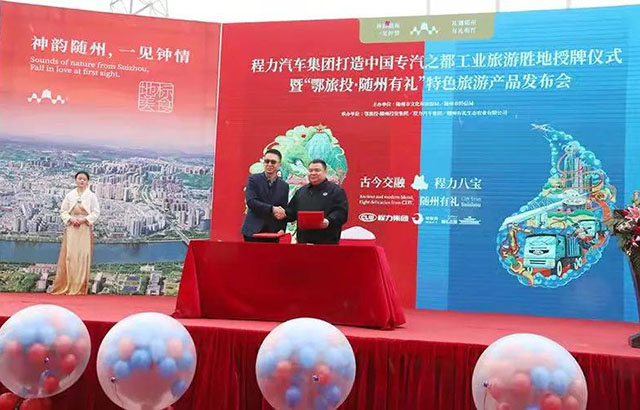在程力工業(yè)旅游產(chǎn)品發(fā)布會(huì)上,程力汽車集團(tuán)總經(jīng)理程阿羅(左)與鄂旅投總經(jīng)理王濤,簽署了文化旅游戰(zhàn)略合作框架協(xié)議,雙方?jīng)Q定利用各自的優(yōu)勢(shì)強(qiáng)強(qiáng)聯(lián)合,共同開發(fā)工業(yè)旅游潛在市場(chǎng),為隨州的經(jīng)濟(jì)發(fā)展增添新的動(dòng)能。