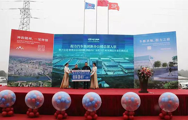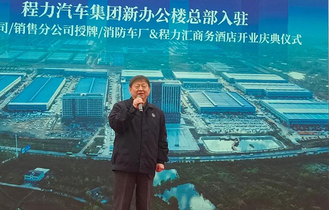 在程力集團(tuán)新廠辦公大樓總部入駐慶典會(huì)上,集團(tuán)總經(jīng)理程阿羅為程力消防車公司總經(jīng)理汪東洋,舉行了消防器材廠開業(yè)授牌儀式,汪東洋總經(jīng)理作了表態(tài)和發(fā)言。