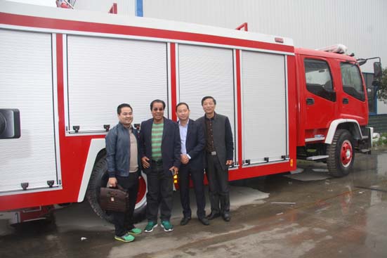 柬埔寨國(guó)家安全部部長(zhǎng)一行的領(lǐng)導(dǎo)們,對(duì)我們程力公司的生產(chǎn)的115臺(tái)慶鈴五十鈴泡沫消防車產(chǎn)品感到非常的滿意
