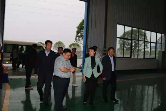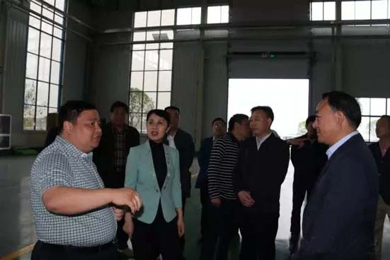 程力集團總經(jīng)理程阿羅(左二),陪同市委書記陳安麗(右二)視察生產(chǎn)車間